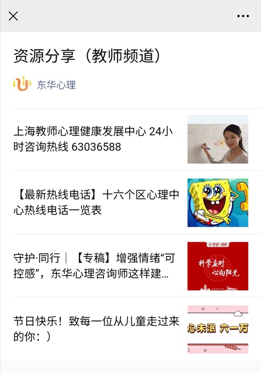 3.  关注微信公众号“东华心理”(dhuxinli),进入“教师频道”,点击“树洞”,则可查看进入树洞的方式。