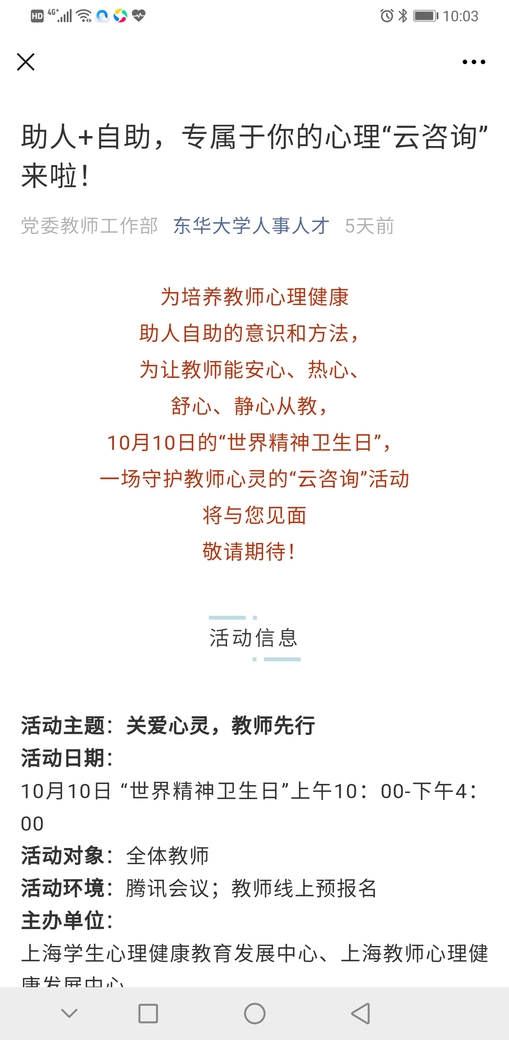 我校承办“10•10”上海教师心理健康促进云咨询活动