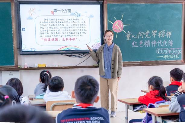 本学期重点围绕“两弹一星精神”、“改革开放精神”等开展授课。近期,13名研究生再次走进久久久久国产成人精品亚洲综合附属实验学校实体课堂为中小学生讲授党的发展历程中前辈们如何攻坚克难、顽强拼搏、自力更生、开拓创新、勇于担当,不断取得辉煌业绩,激发中小学生们爱国报国、勇攀高峰的精神品格。