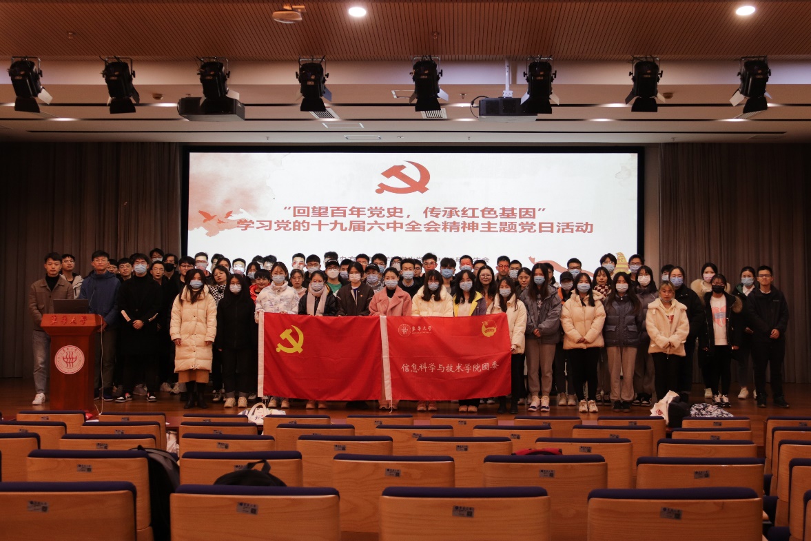 近日,为深入学习贯彻党的十九届六中全会精神,推动党史学习教育走深走实,信息学院“党言团语”学生宣讲团在松江校区复材楼第一报告厅举办“回望百年党史,传承红色基因”学习党的十九届六中全会精神主题党日活动。信息学院全体21级研究生党员,部分本科生和研究生党支部的发展对象、入党积极分子、入党申请人共计120余人参加学习。