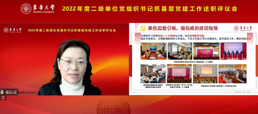 刘承功逐一点评并讲话,对全校各二级单位党组织认真履行管党治党主体责任,狠抓基层党建工作落实,抢抓机遇,攻坚克难,特别是各级党组织和广大党员在疫情“大考”中,践行初心使命,充分发挥作用,推动形成以高质量党建引领高质量发展的“奋进”新格局给予肯定。他指出,2023年是全面贯彻落实党的二十大精神的开局之年,是实施“十四五”规划的又一个关键之年,学校各级党组织要立足全面学习贯彻党的二十大精神,深化构建与学校高质量创新发展相适应的“大党建”工作格局。他强调,要突出政治引领,强化政治功能,持续全面学习贯彻党的二十大精神,落实“学思用”贯通机制,切实把学习成果转化为抓班子带队伍、统筹推进干部和人才队伍建设、推动中心工作、提高治理效能等方面的思路举措和进展成效;要融入中心大局,增强组织功能,以《中国共产党普通高等学校基层组织工作条例》为遵循,以本轮创建“上海党建工作特色高校”为载体,实施“铸魂·治学育人”“引领·党建创优”“融合·创新发展”三项“奋进计划”,全面推进二级单位党组织和基层党支部夯实基础、特色攻坚、辐射带动、发挥作用,以高质量党建引领各项事业高质量创新发展;要深化责任落实,提高政治能力,进一步筑牢“两个体系”,创新“五类示范”,想在前头、干在前沿、走在前列,比学赶超,对标争先,不断提升服务国家重大战略和区域经济社会发展的能力和水平,在新时代新征程奋力谱写“奋进东华”崭新篇章。