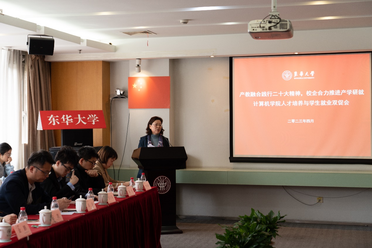 为深入学习宣传贯彻党的二十大精神,进一步推动学院人才培养与学生就业工作,围绕师生需求,聚焦靶向服务,4月13日上午,计算机科学与技术学院人才培养与学生就业双促会在松江校区举行。党委副书记崔运花出席并致辞,杭州海康威视数字技术股份有限公司、绿盟科技集团股份有限公司等十三家企业嘉宾,我校研究生院常务副院长俞昊、就业服务中心主任严军,计算机学院党委副书记(主持工作)杜明、院长方志军、专业教师代表、专职辅导员、研究生代表参加会议,会议由学院党委副书记李华婷主持。